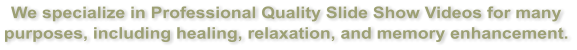 Videos produced from our photography relax the body and refresh the mind. We also do custom slide